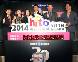 由「Hit Fm聯播網」主辦的「hito流行音樂獎」,是除了金曲獎以外台灣非官方最具指標性的音樂盛事!以「絕對音樂˙絕對星盛事」為活動主題的「2014 hito流行音樂獎頒獎典禮」在今天宣布正式啟動,6/1在台北小巨蛋盛大舉行!特別感謝主要贊助台灣賓士Mercedes-Benz;聯合贊助宏達國際電子hTc、中華電信;頒獎典禮實況將透過TVBS 56台、TVBS歡樂台、TVBS ASIA、TVB 8、華視主頻道、華視HD頻道、中華電信MOD、hichannel、Hami電視,Yahoo!奇摩名人娛樂,微博,新光三越台北信義新天地LED等,跨平台媒體傳遞給全球樂迷,共享榮耀時刻!